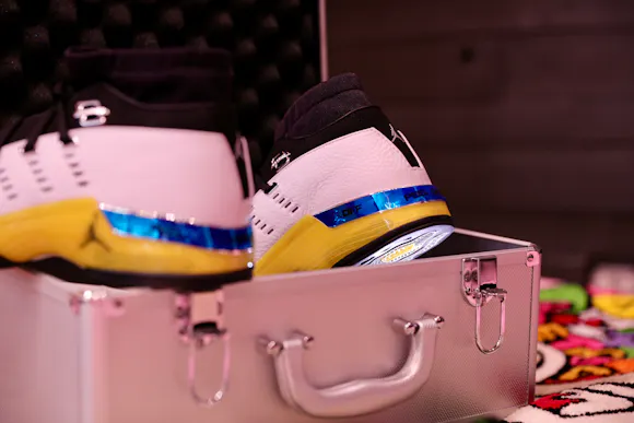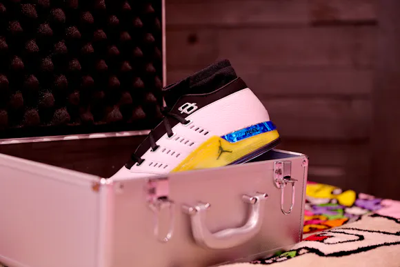 The Air Jordan 17 Low “Lightning” colorway, also referred to as the “All-Star” edition, was worn by Michael Jordan during his final NBA All-Star Game in 2002. Designed with a lower cut compared to the standard Jordan 17 model, the “Lightning” colorway showcases a black Dynamic Fit sleeve, a white leather upper, and striking Lightning accents. To provide additional support, a chrome strip surrounds the base of the heel, while the outsole features a traction pattern inspired by a pixelated heat map. To peel or not to peel, what will you do with your sticker!?